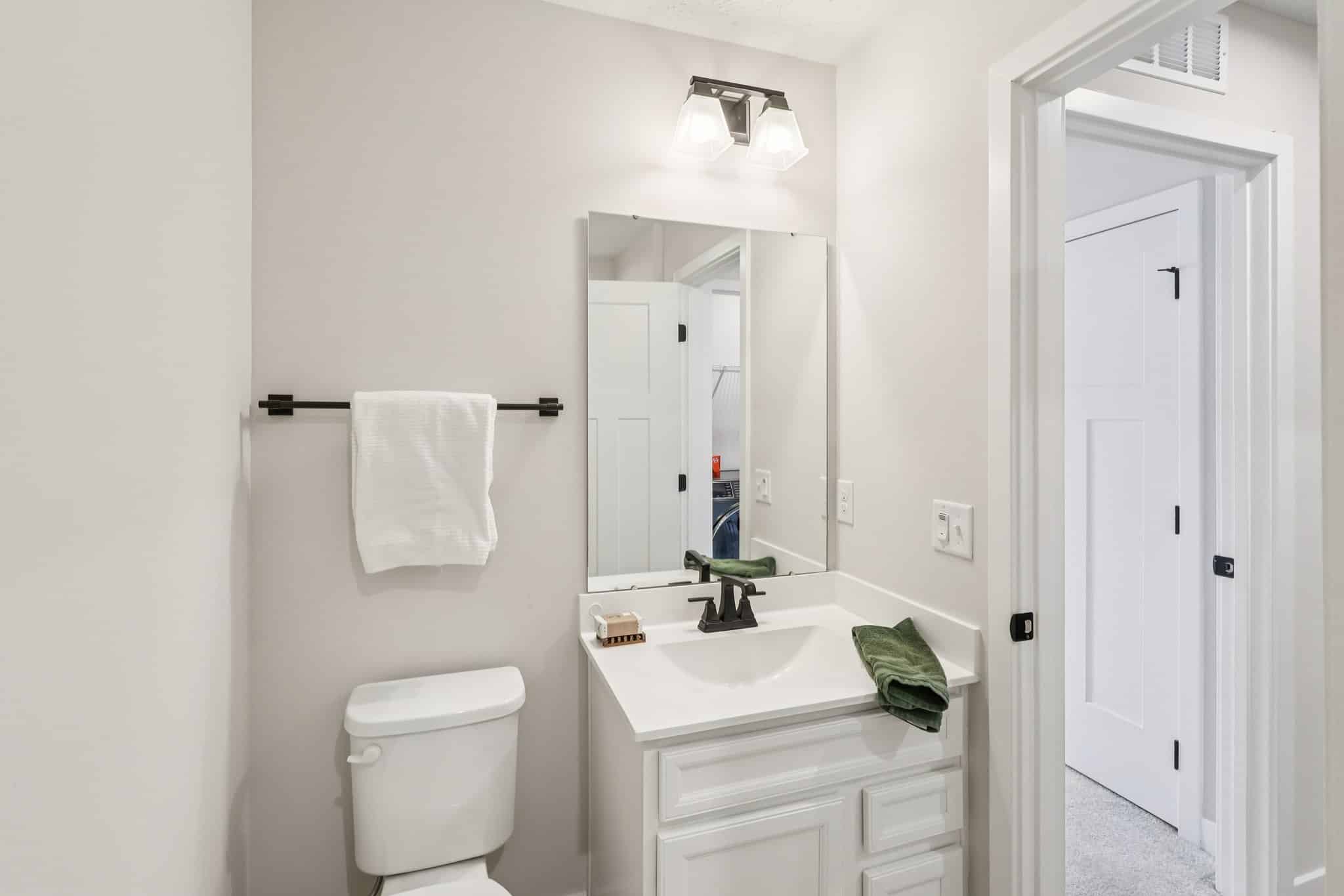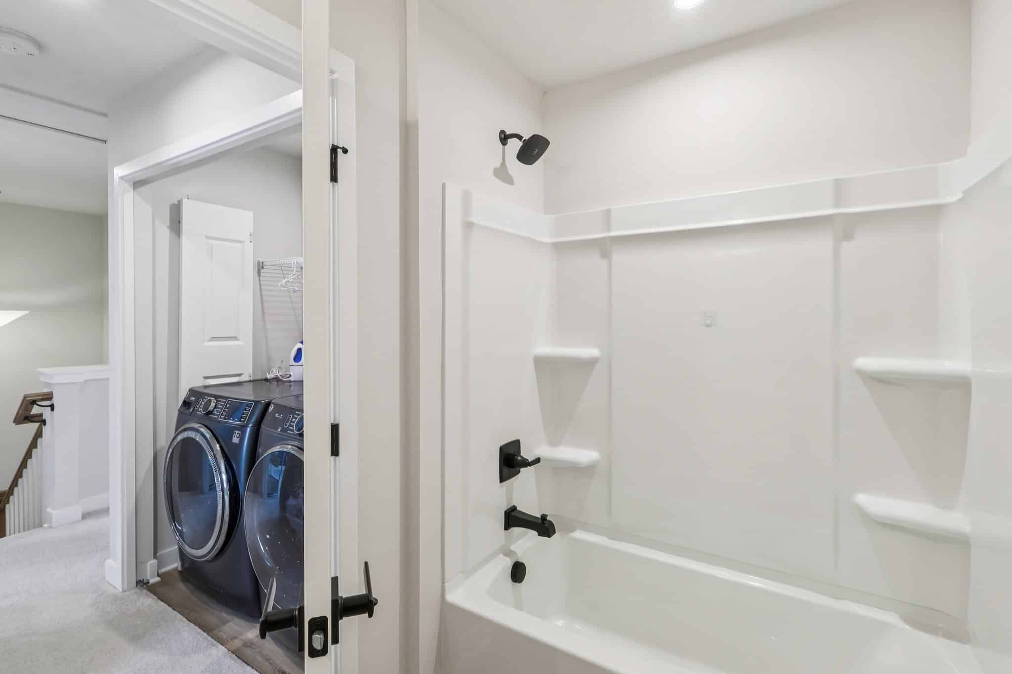 Two additional bedrooms, a full bathroom, and a dedicated laundry space complete the second level.