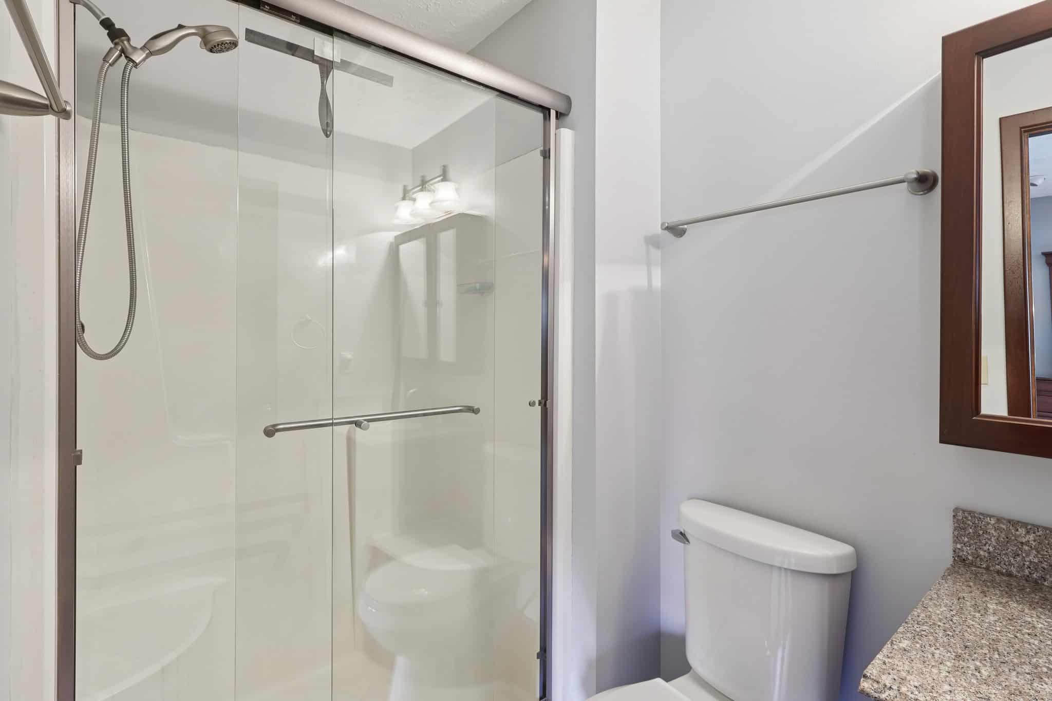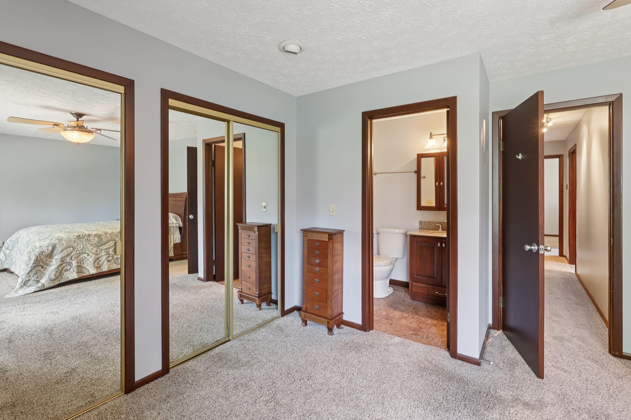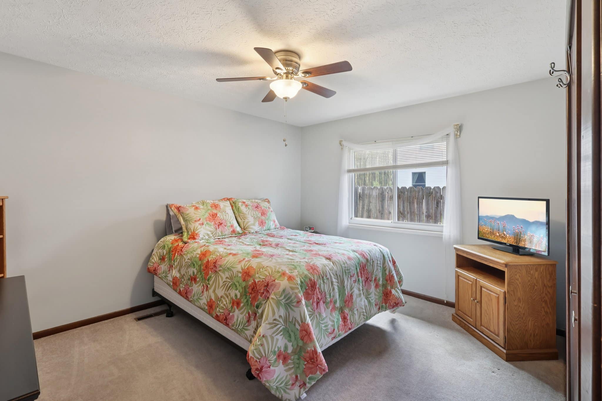 The private primary suite offers multiple closets and an ensuite bath, while two additional bedrooms and a full bathroom complete the main level.