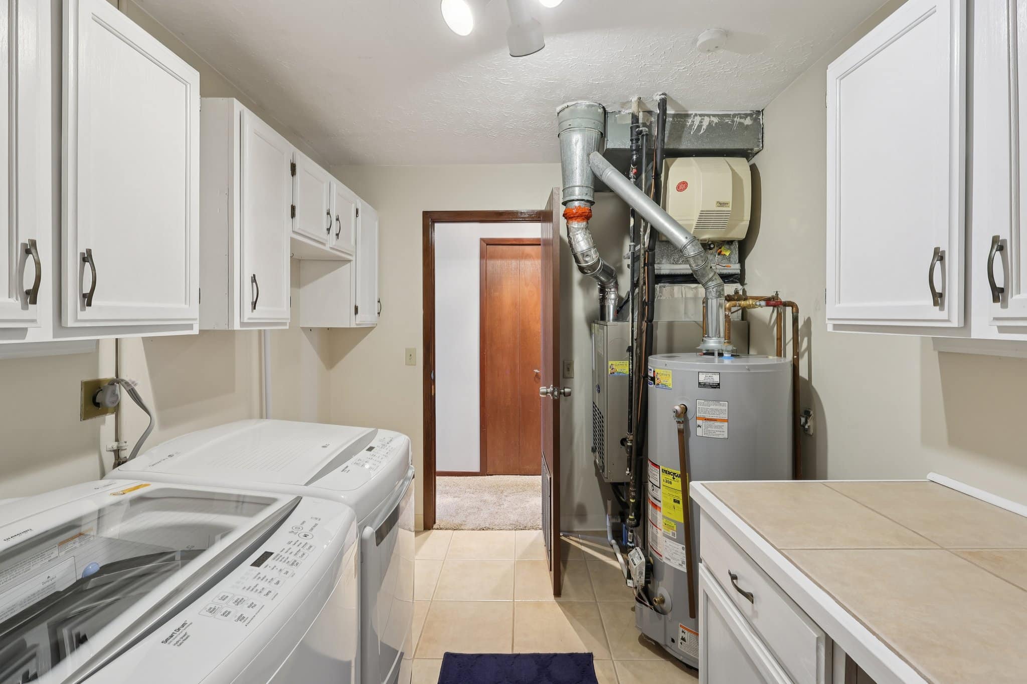A generously sized laundry room provides abundant storage and extensive counter space for convenience.