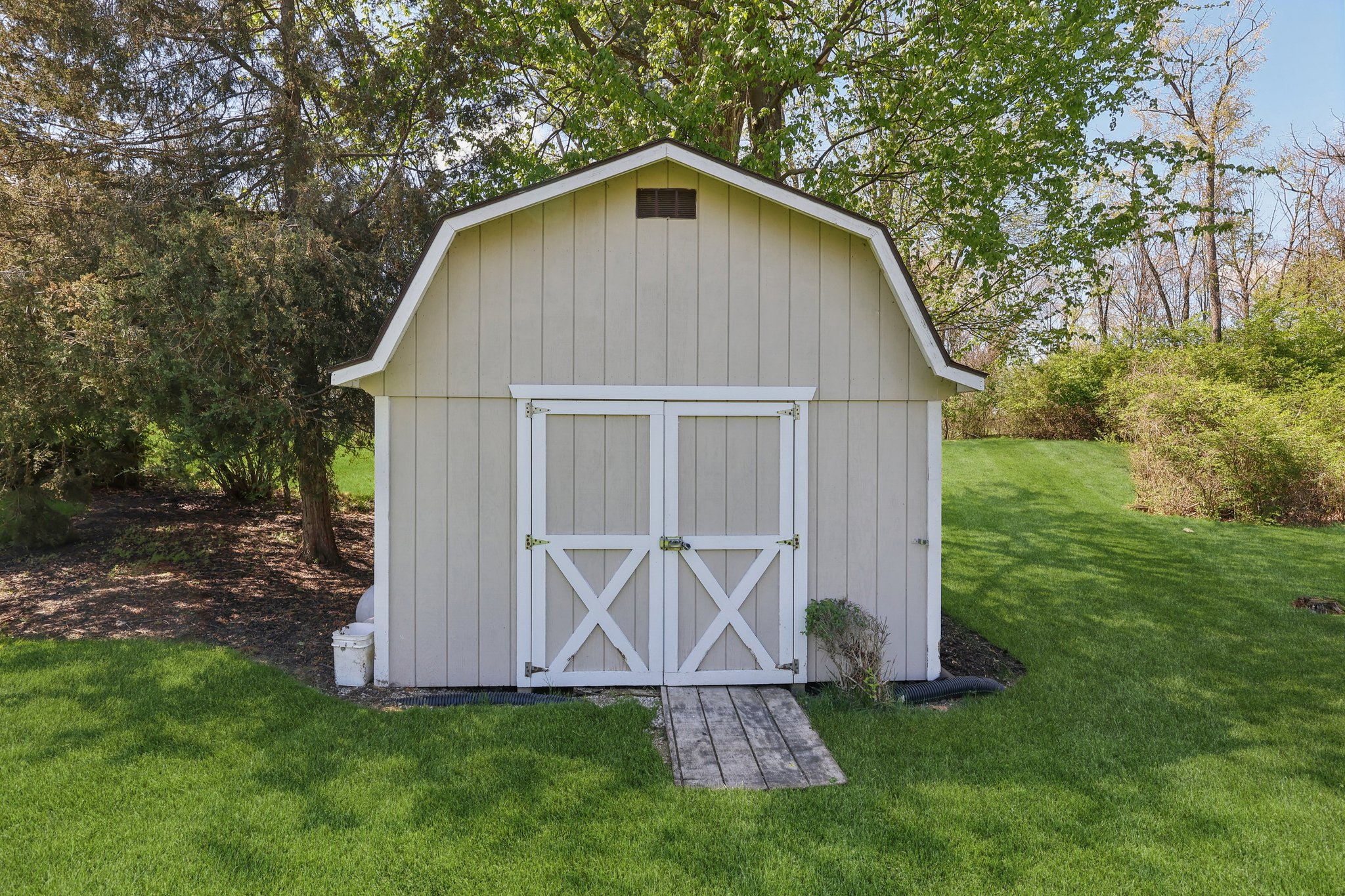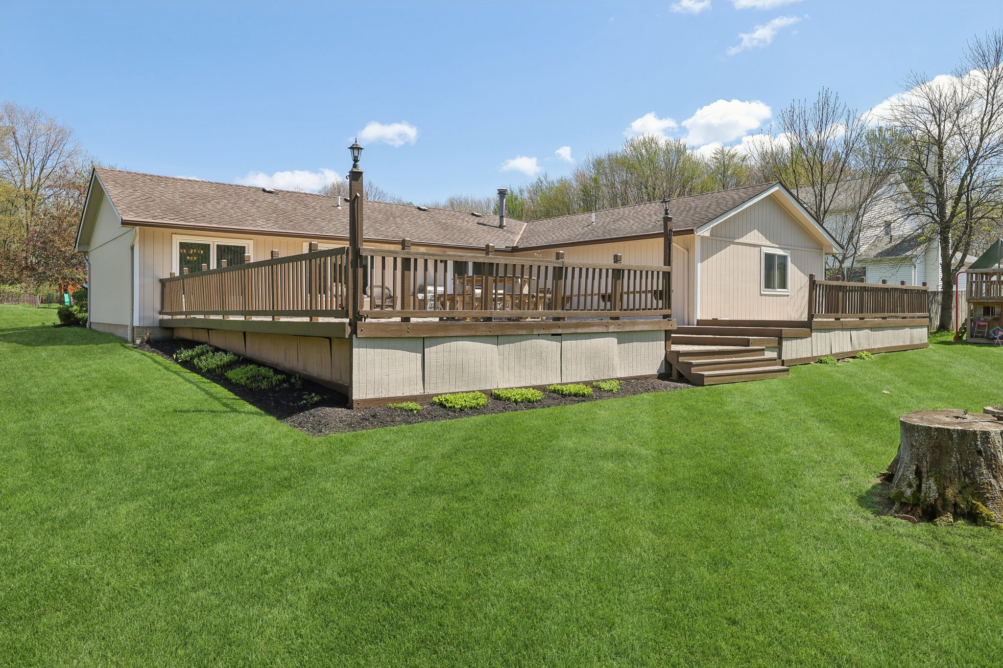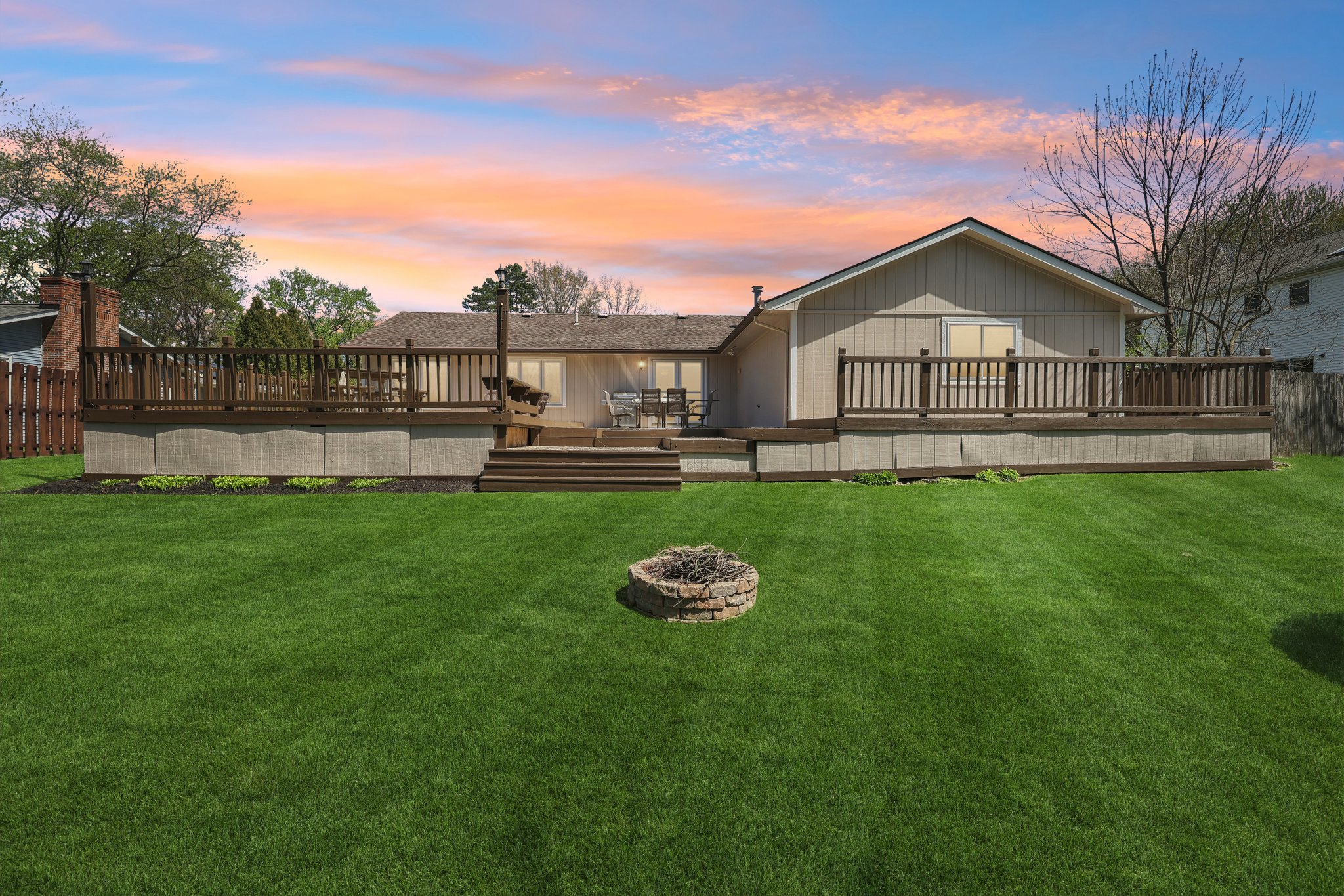 Step outside to enjoy the immaculate, well-manicured yard, complete with an expansive deck spanning the width of the home with built-in seating. The backyard presents a firepit, shed, and plenty of green space.