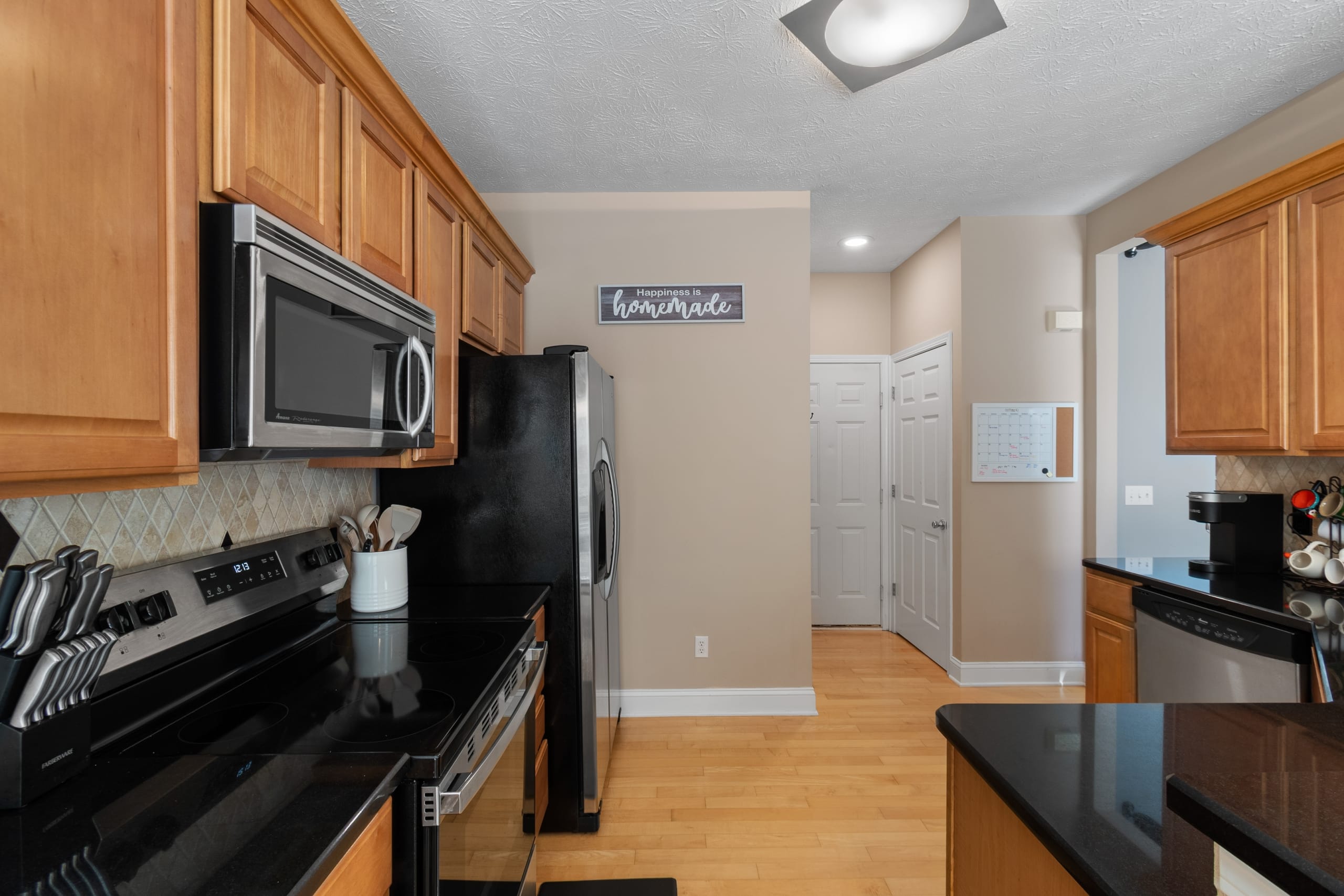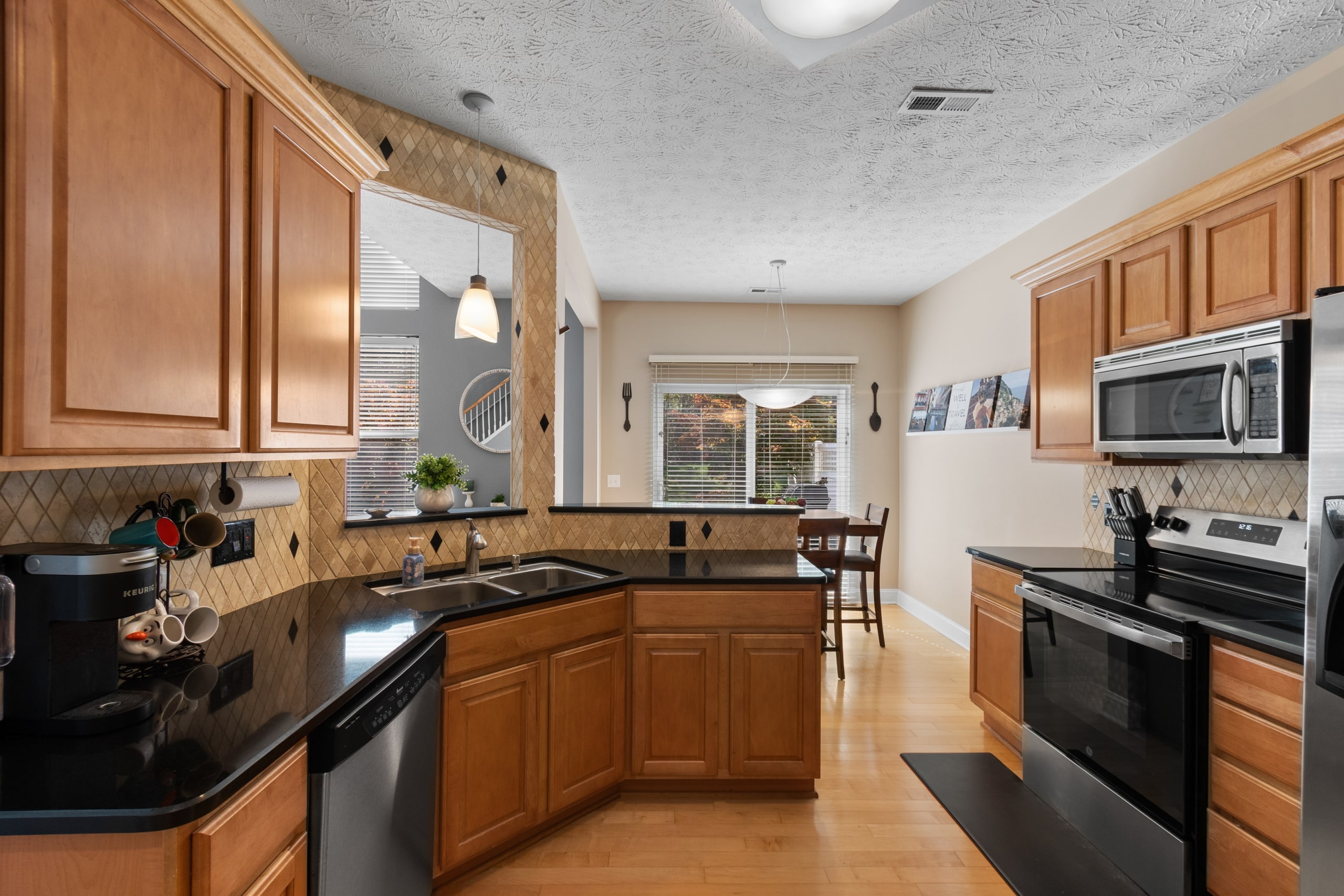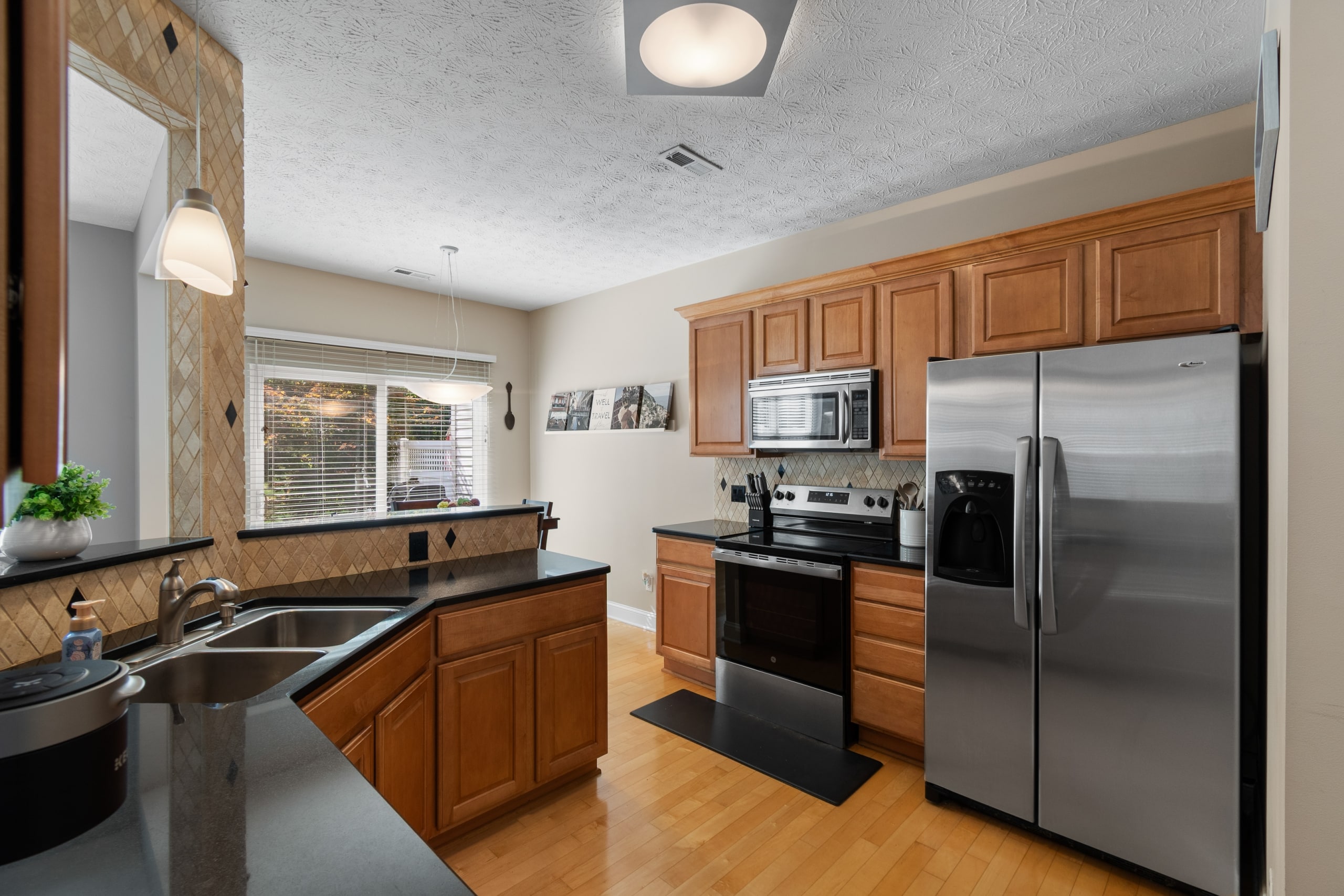 Prepare nutritious meals in the updated kitchen, offering extensive cabinetry, granite countertops, stainless steel appliances, and an eating area with sliders to the backyard.