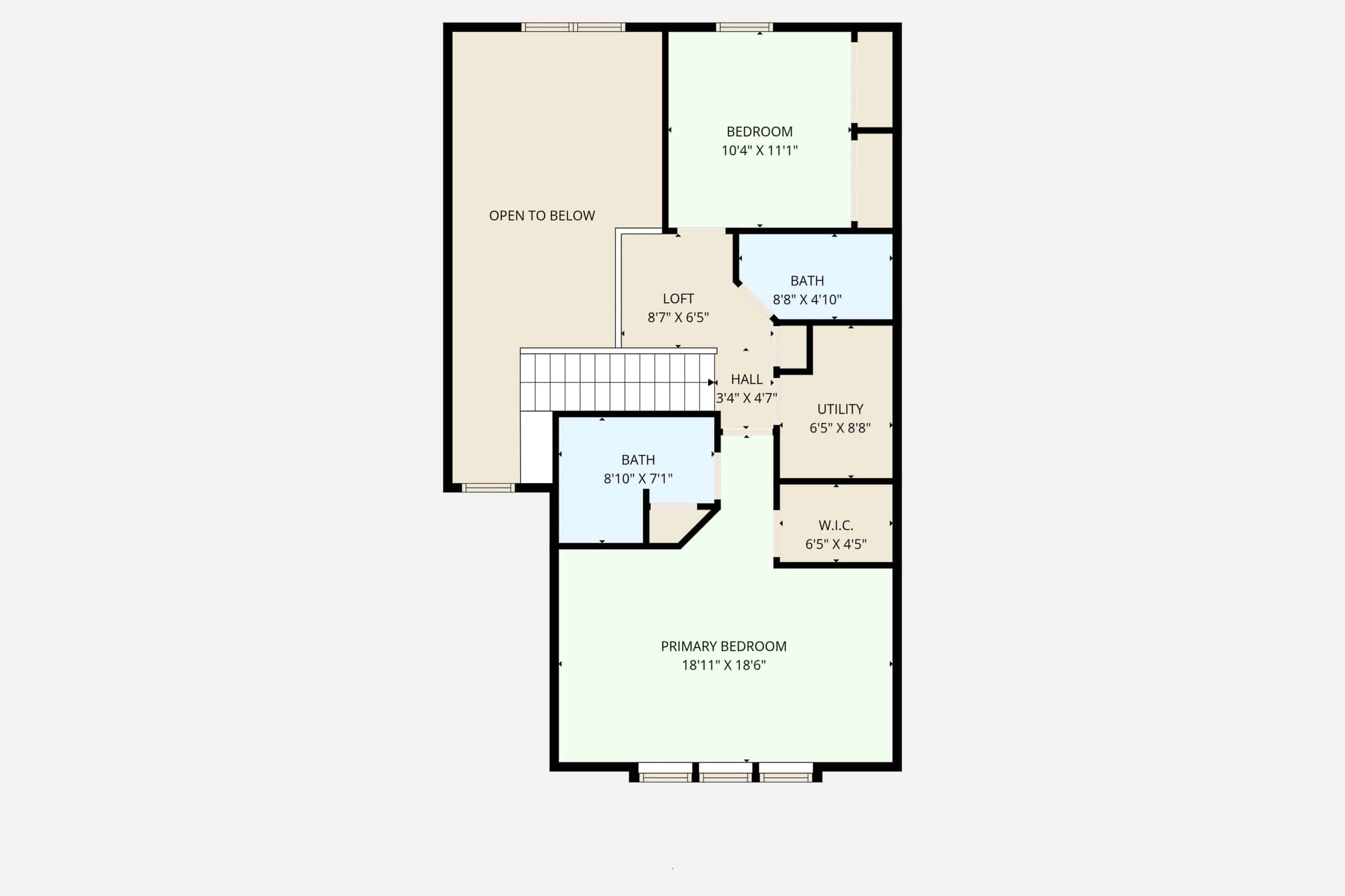 An additional bedroom, full bathroom, laundry room, and a versatile loft area complete the second level.