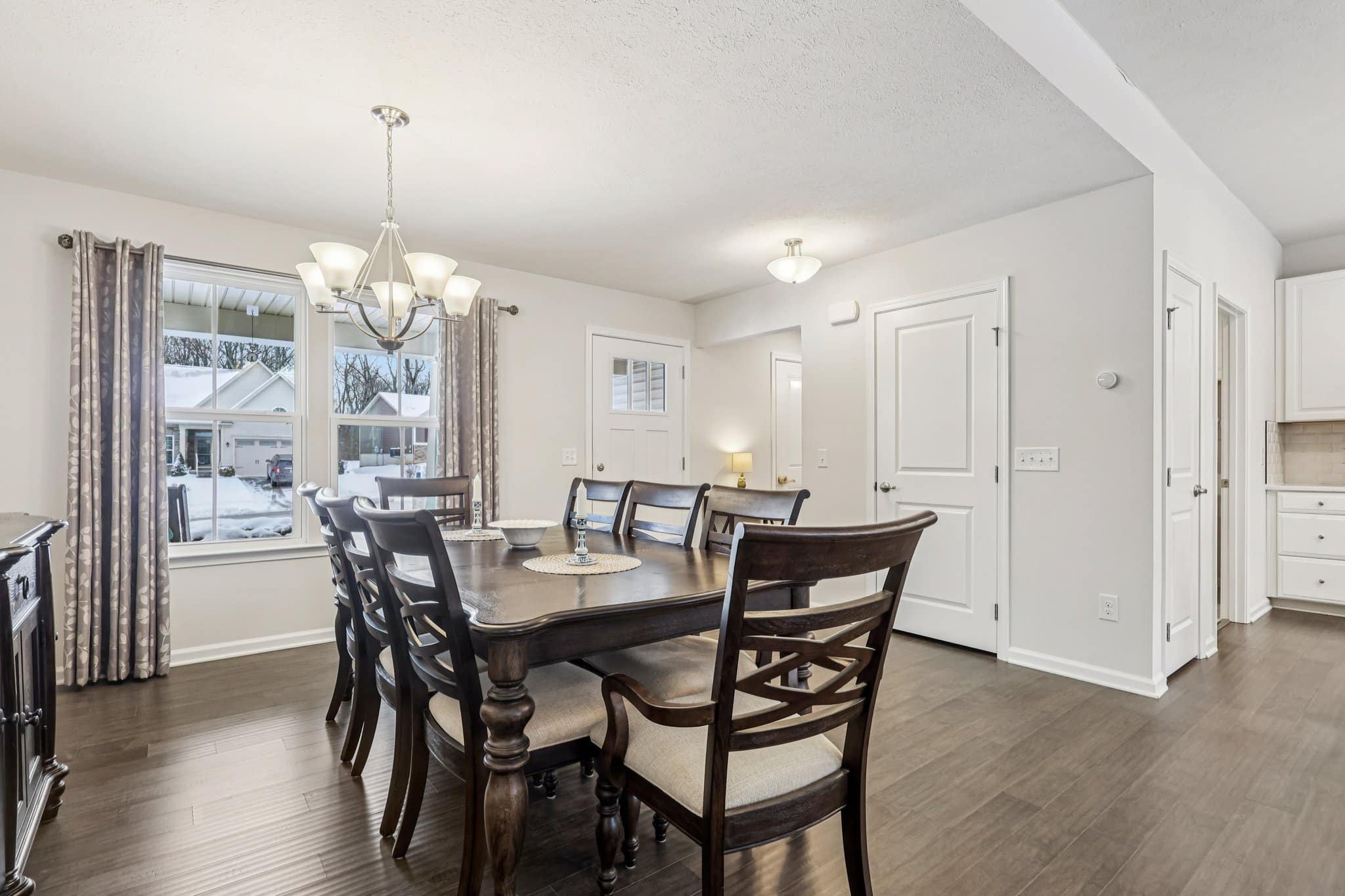 The open-concept main level features sweeping ceilings, hardwood flooring, an arrival center, a spacious great room, bright and airy dining room, and a gourmet kitchen.