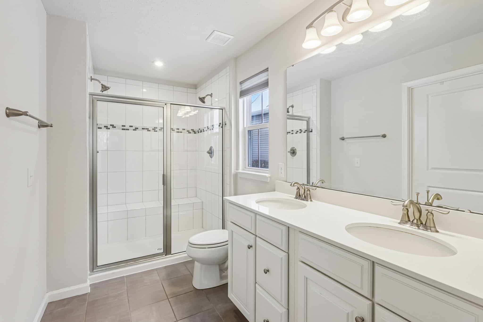 Retreat to the owners’ suite, which includes an en-suite bathroom with double sinks, a walk-in shower with dual showerheads, and a walk-in closet.