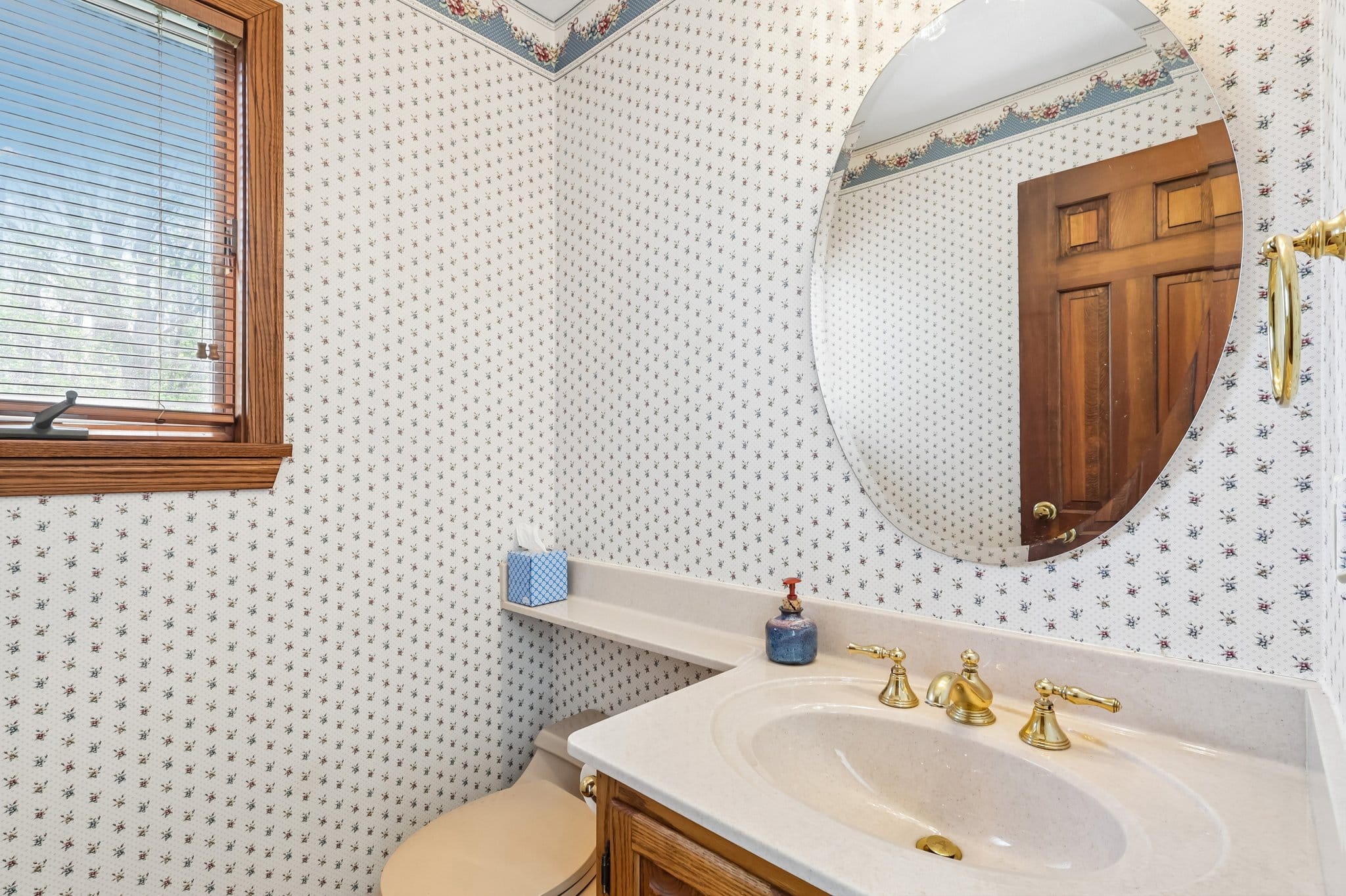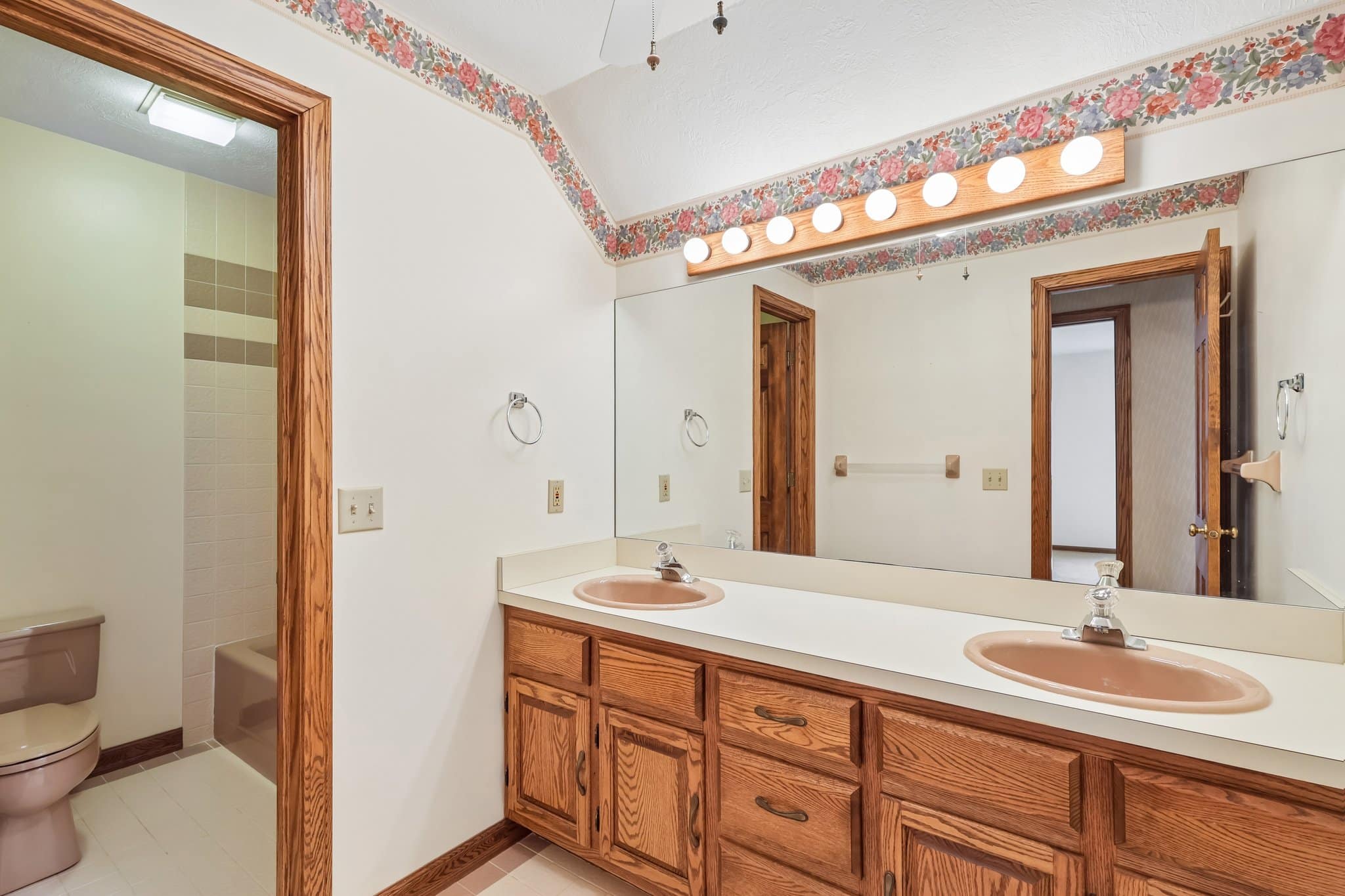 Upstairs, you’ll find three, generous-sized bedrooms and a full bathroom with double sinks