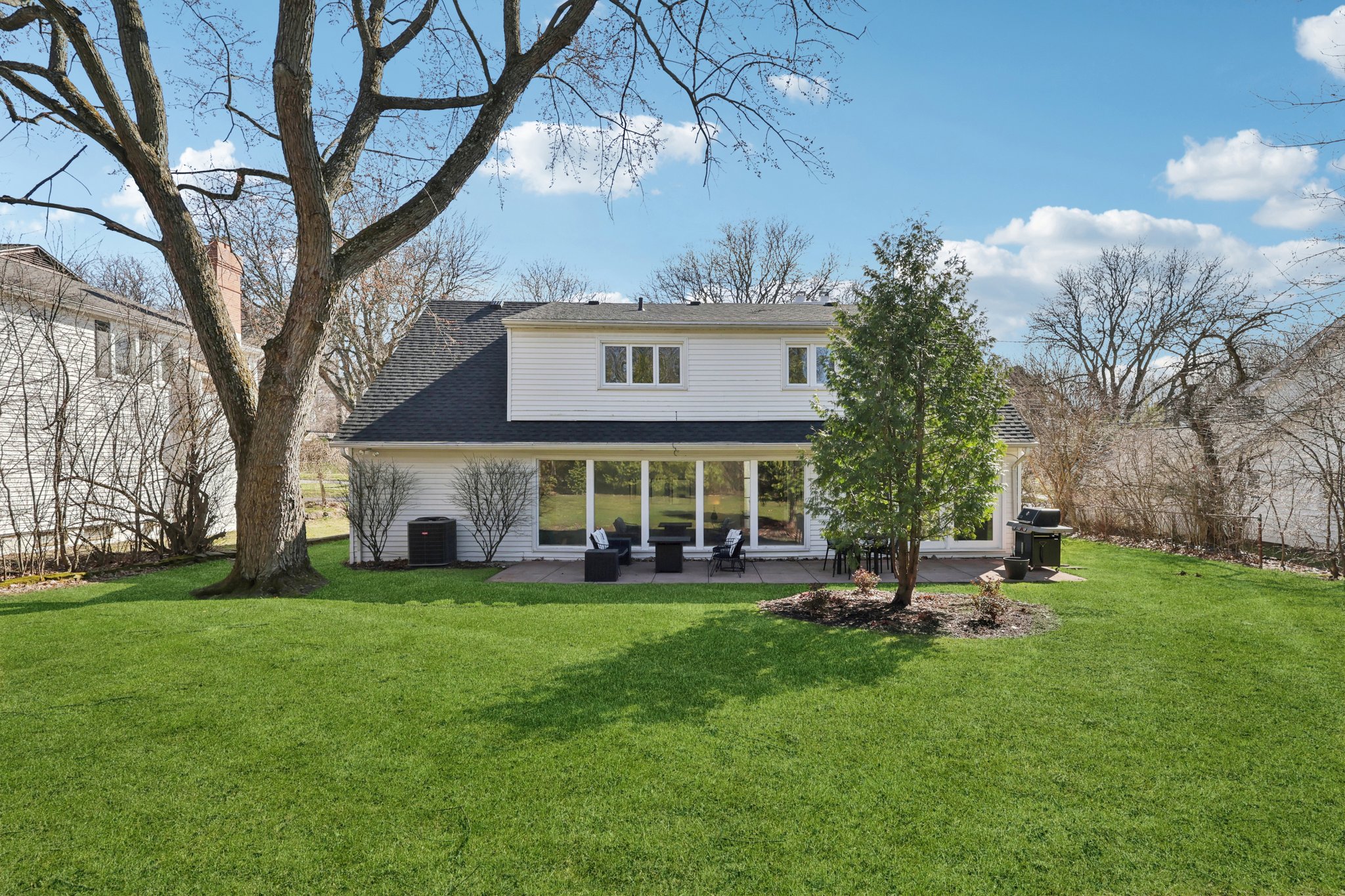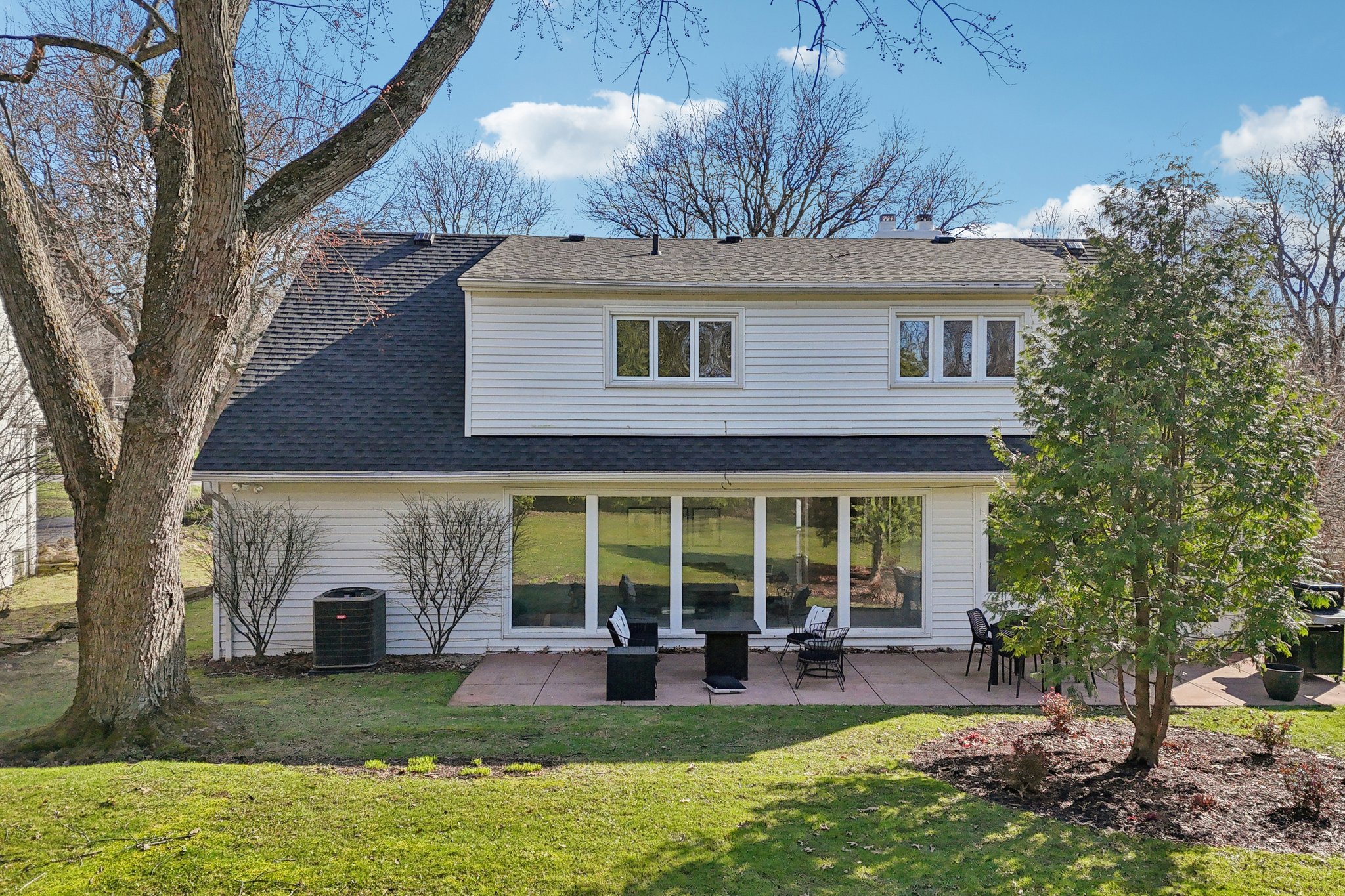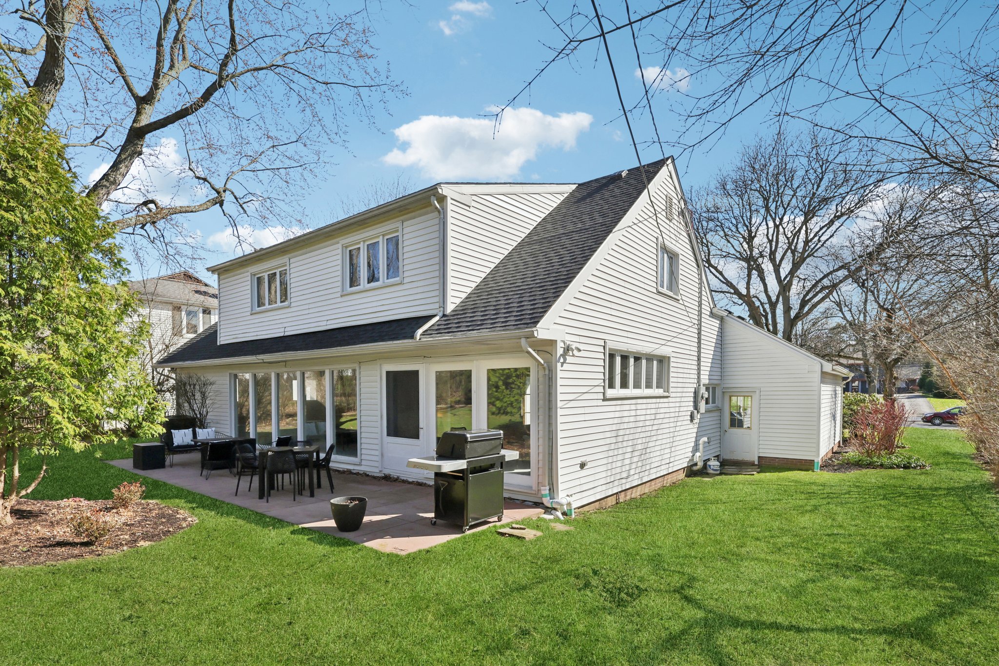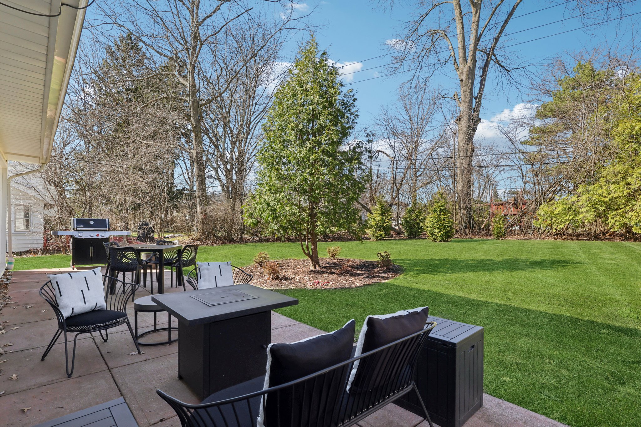 Outside, enjoy the patio overlooking the .32-acre level yard, showcasing a wooded backdrop.