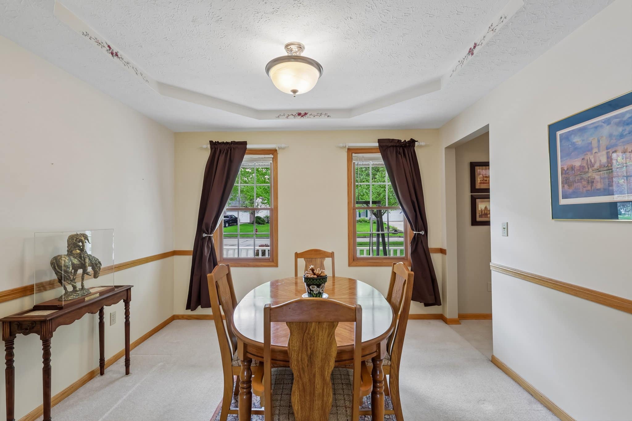 Step onto the covered front porch which ushers you into the two-story foyer. Entertain in the formal living room, featuring large windows that fill the room with abundant natural light. The formal dining room boasts a tray ceiling and chair molding, perfect for hosting intimate dinner parties.