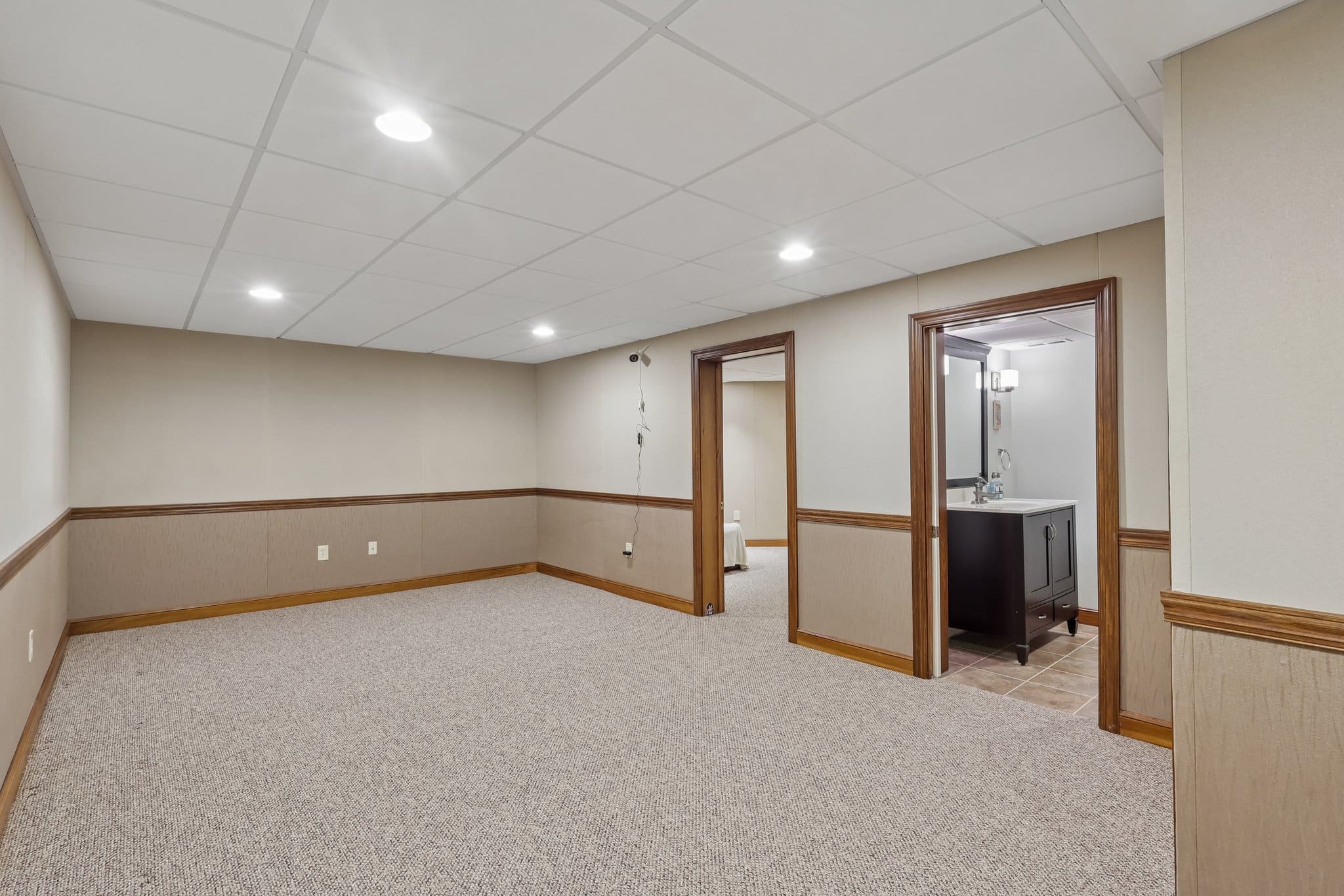The finished basement offers 564 additional square feet with a recreation area, a multi-purpose room, full bathroom, and laundry area.