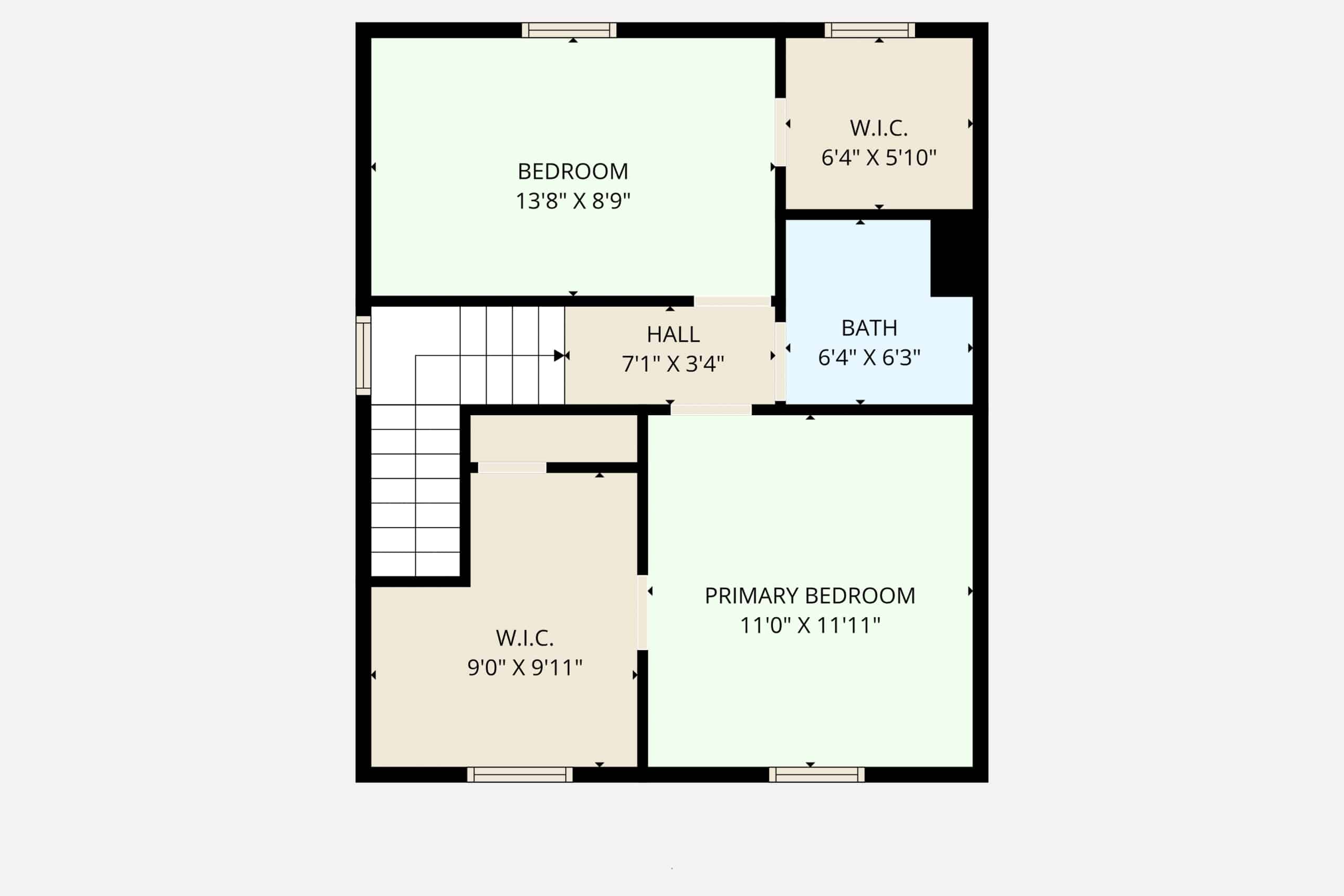 Upstairs, you’ll find two bedrooms plus two additional walk-in closets, perfect for a nursery, home office, playroom, or extra storage.