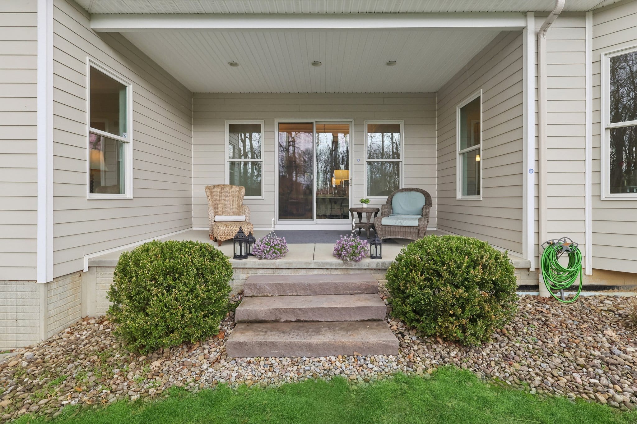 Situated on 1.52 private acres in the Woodridge School District, this home also features a covered back porch and a wooded backdrop.