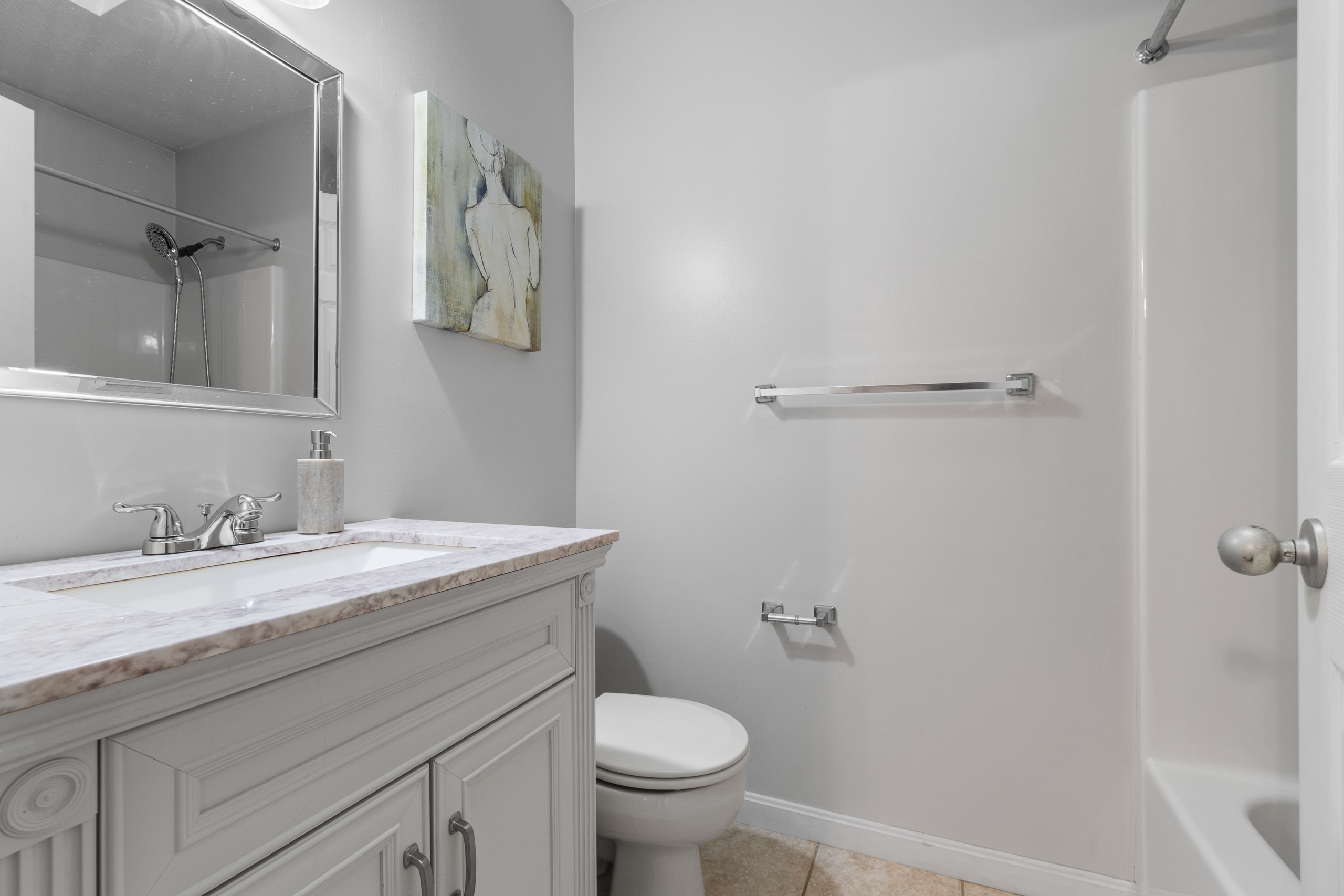 The elegant primary suite offers a walk-in closet and a luxurious ensuite bathroom, fully updated in 2023 with modern finishes for a spa-like feel. A second generous bedroom and full guest bath provide flexibility for visitors or a comfortable home office. The nearby laundry room adds everyday convenience.