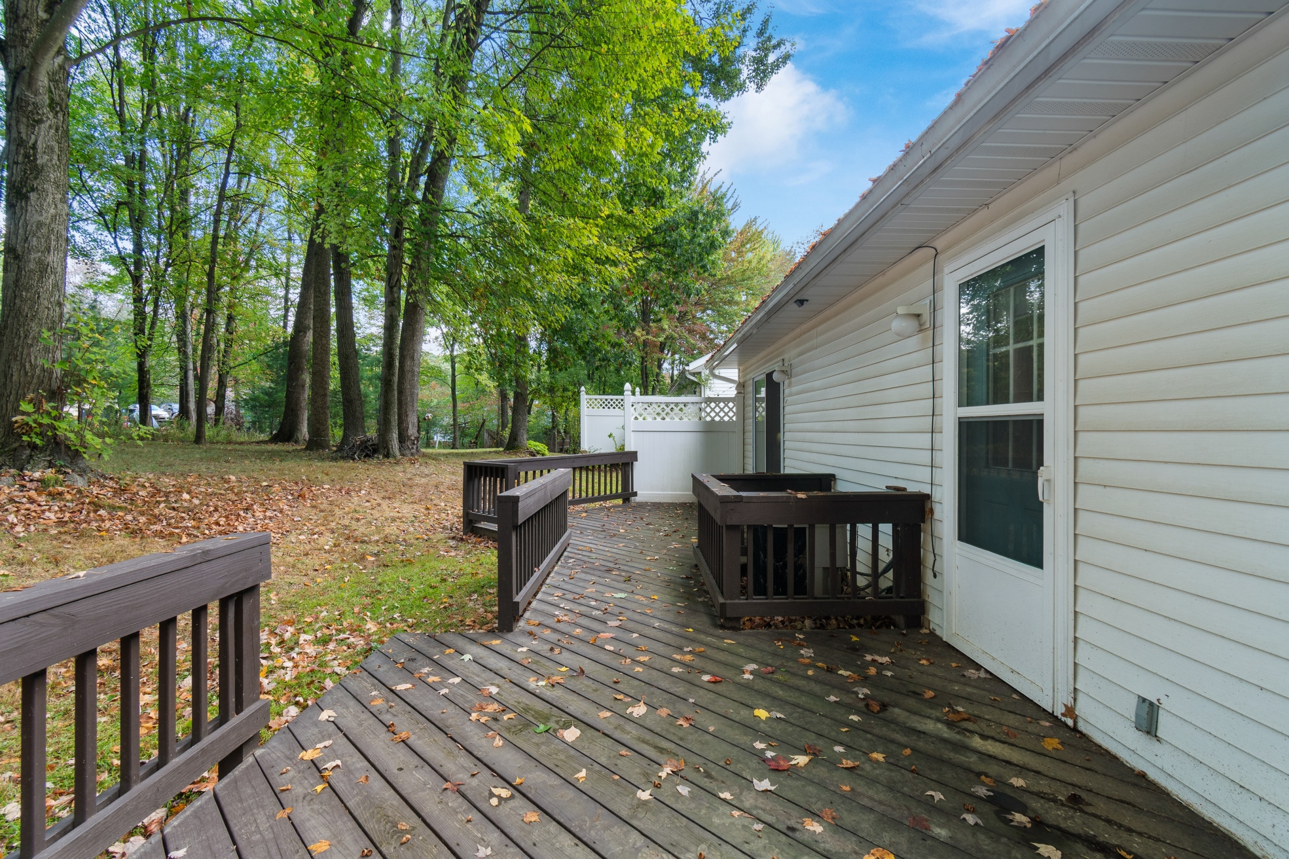 Step outside to a spacious private deck, ideal for relaxing or hosting gatherings with scenic wooded views. The property also includes an attached two-car garage and sits on a manageable 0.03-acre lot within the Akron School District.