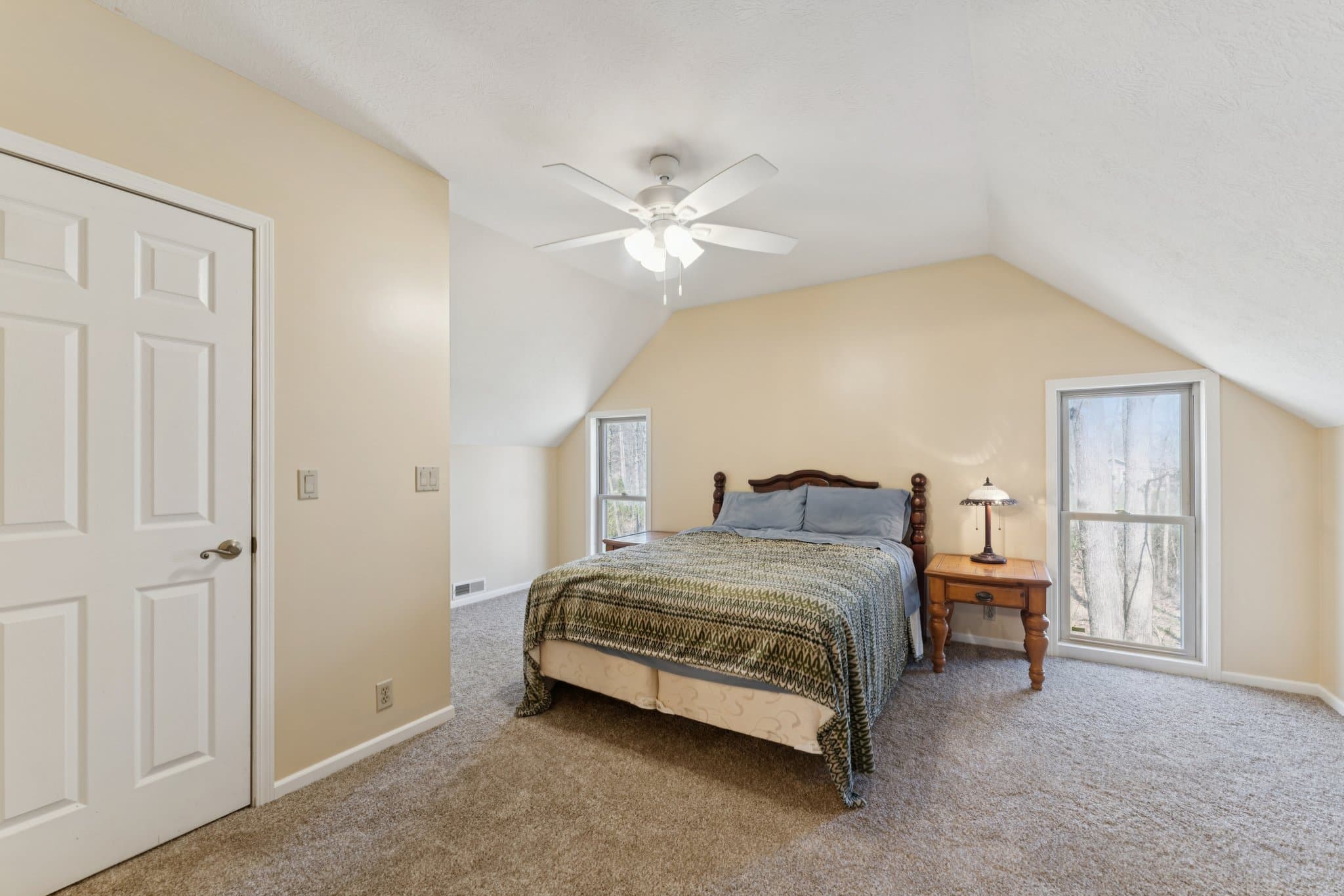 Upstairs, the loft leads you to a fourth bedroom and full bathroom with a skylight.