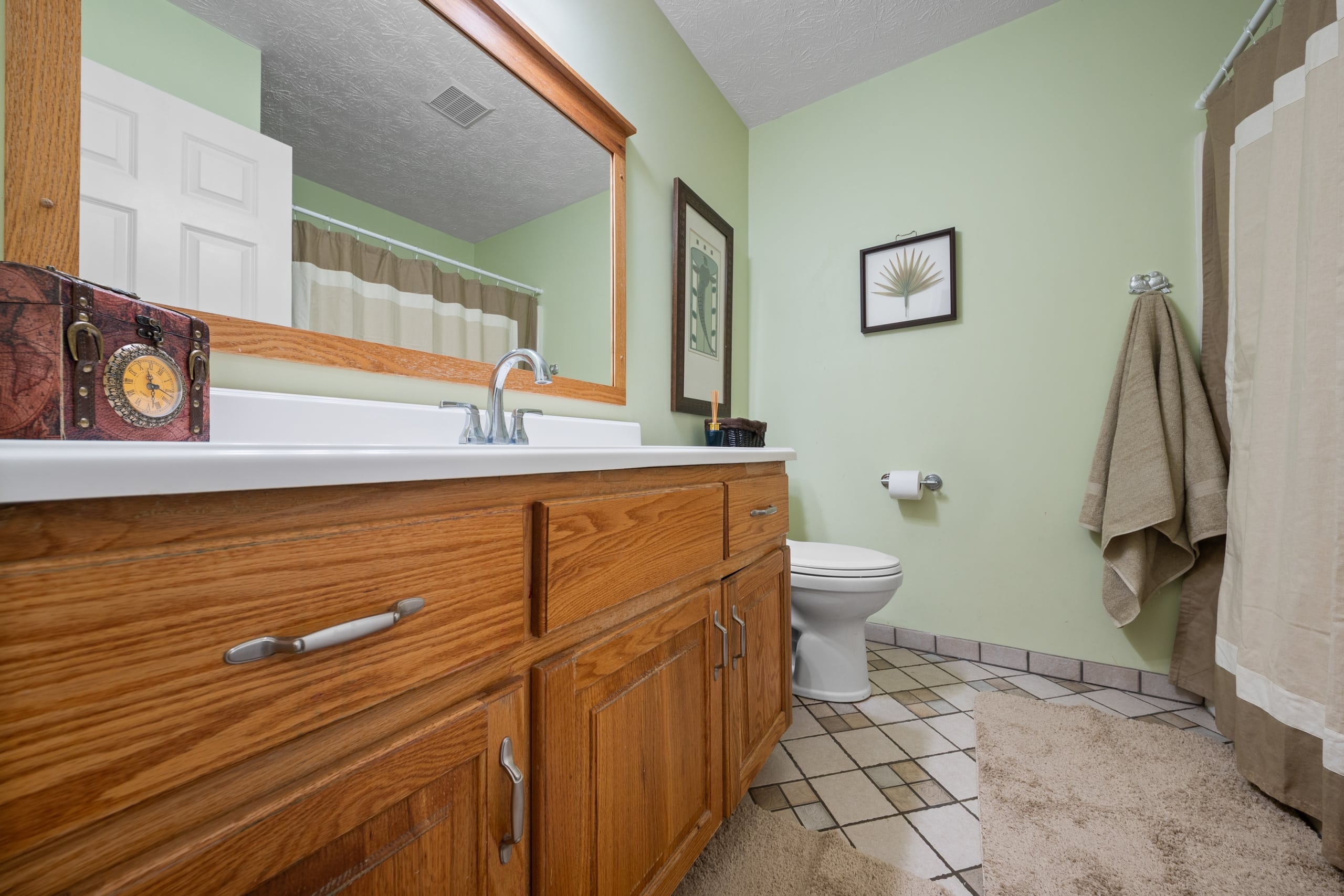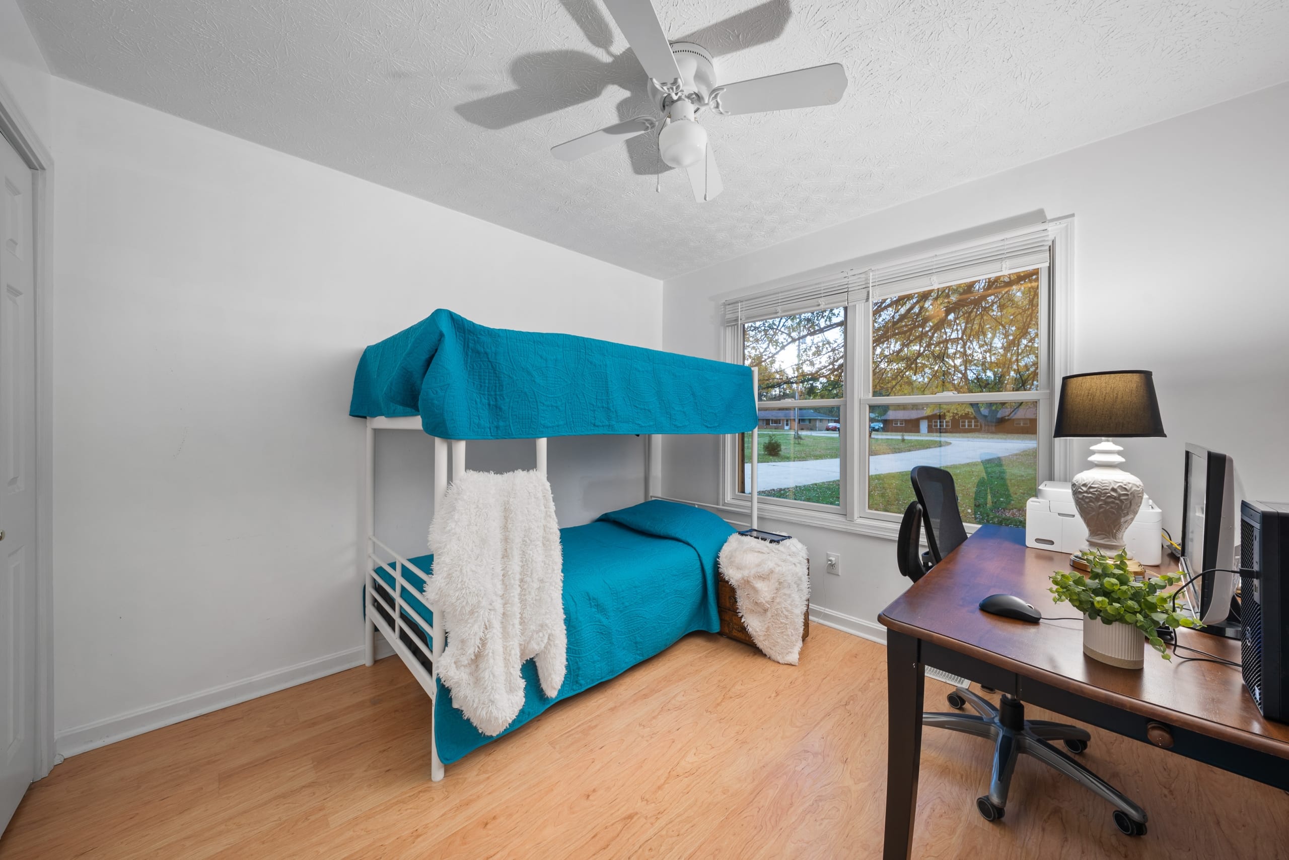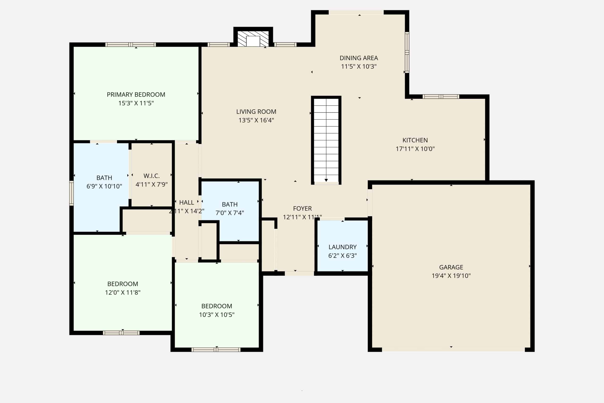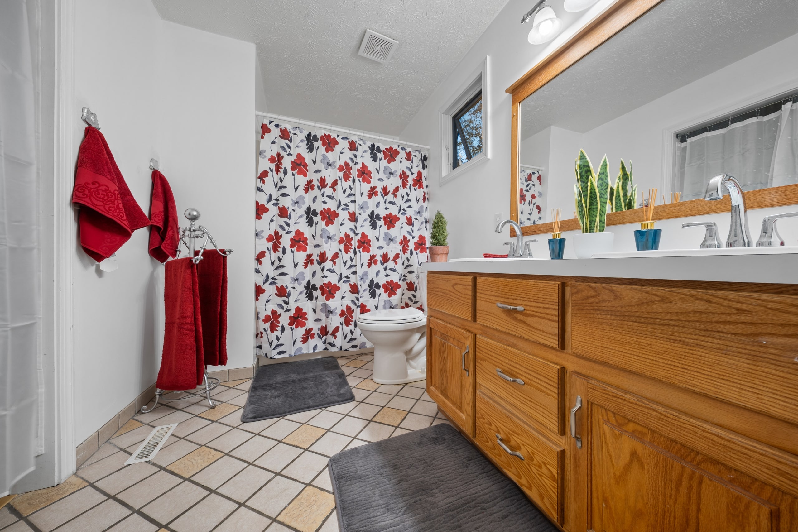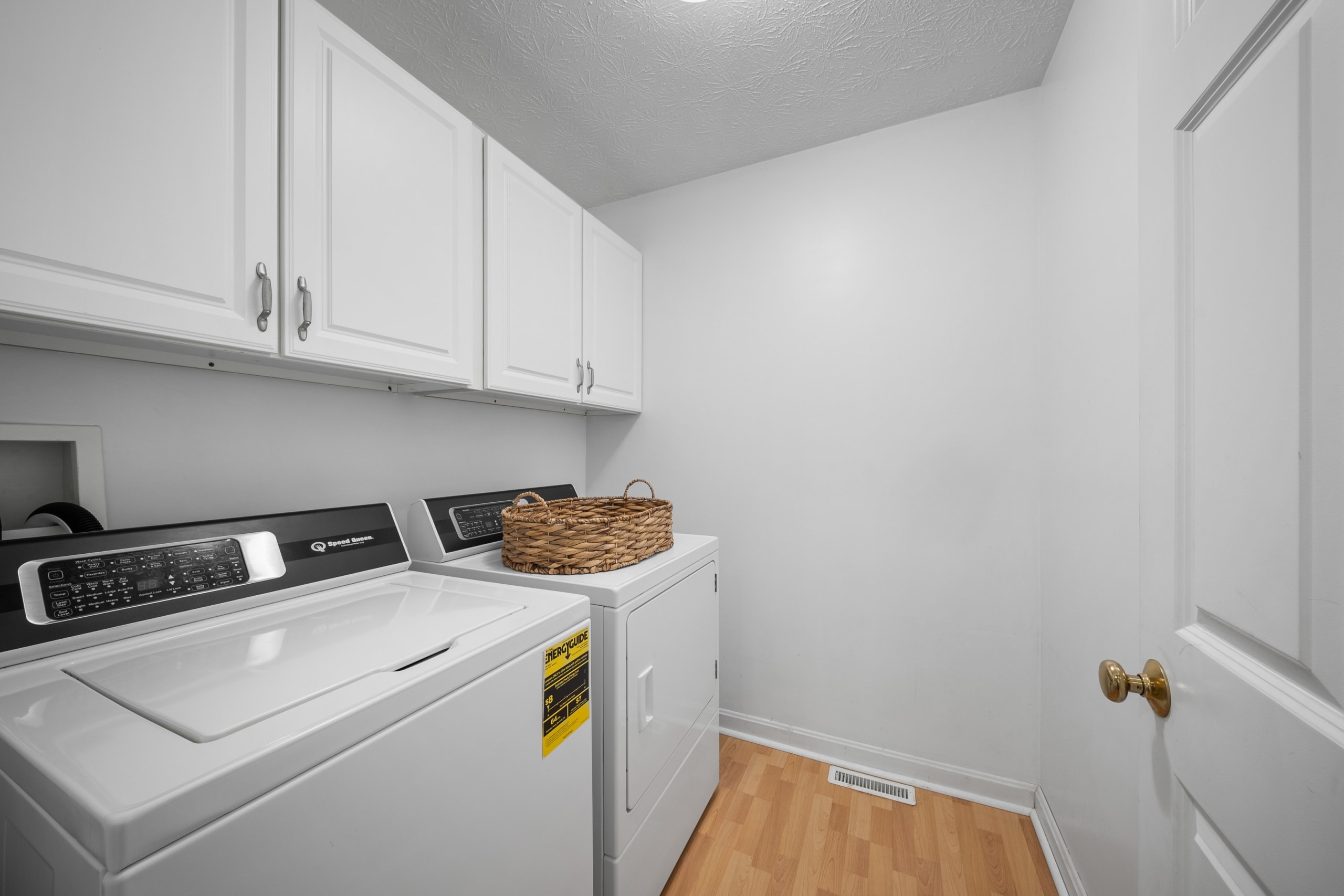 Two additional bedrooms, a second full bathroom, and a laundry room complete the main level.