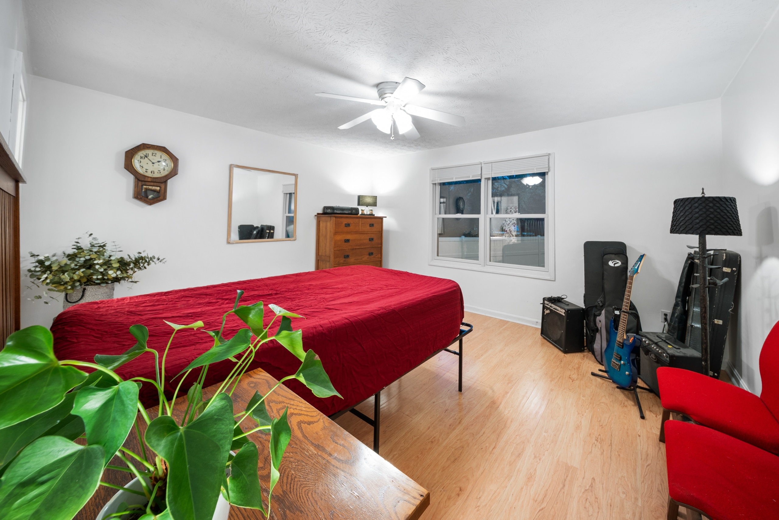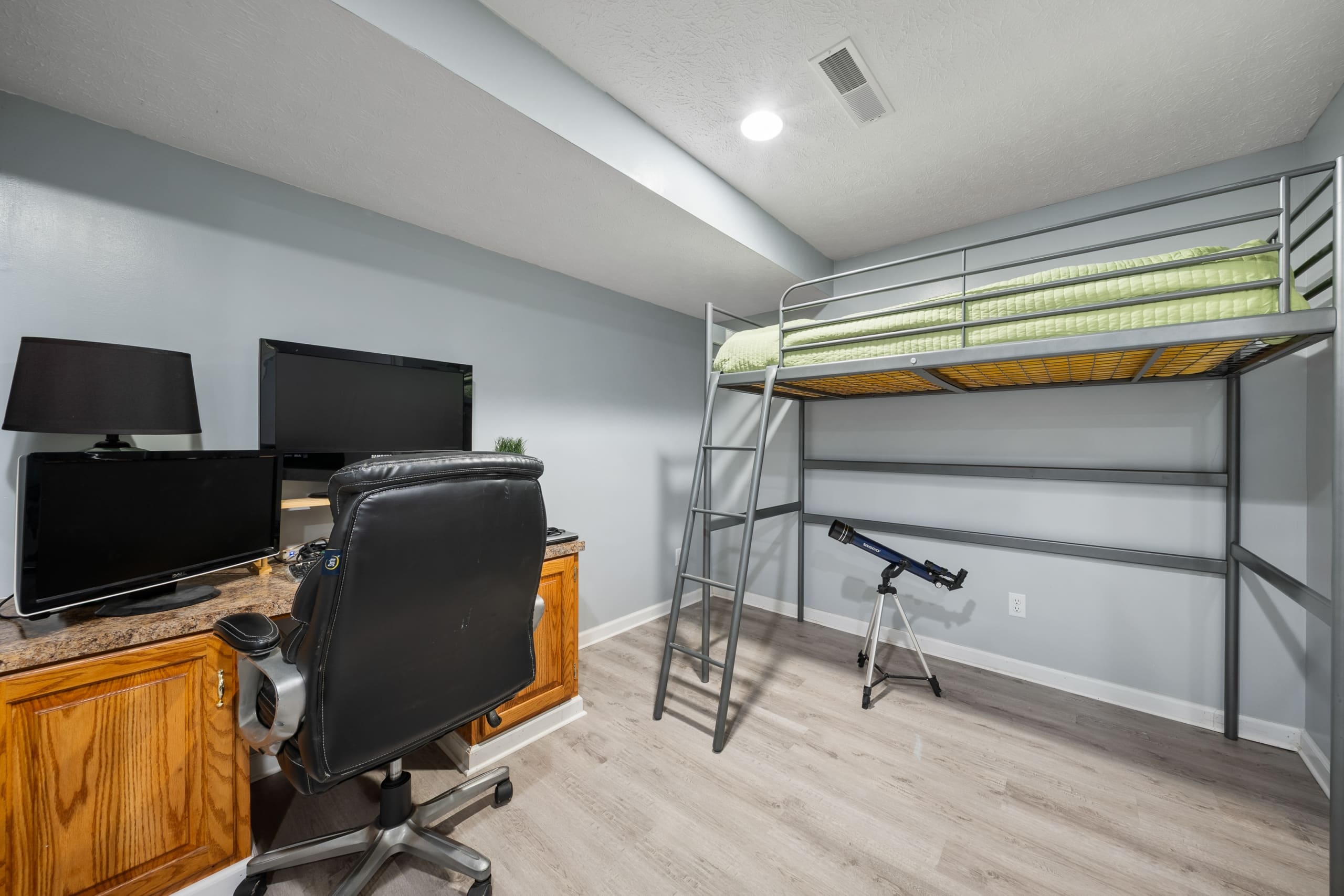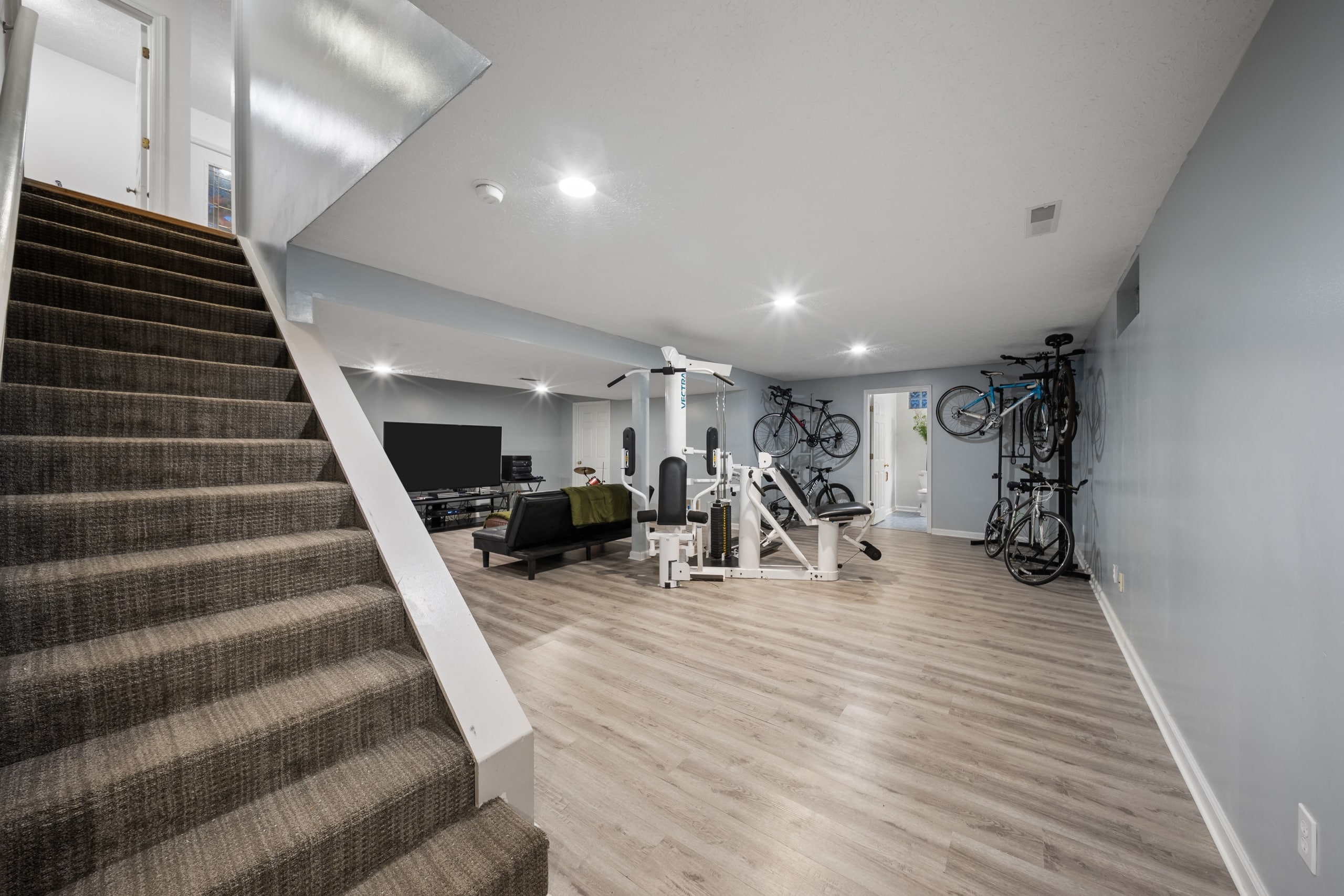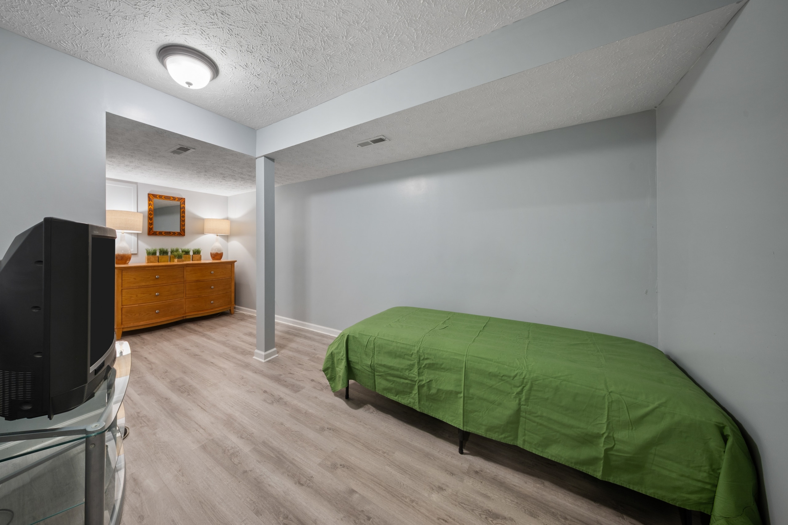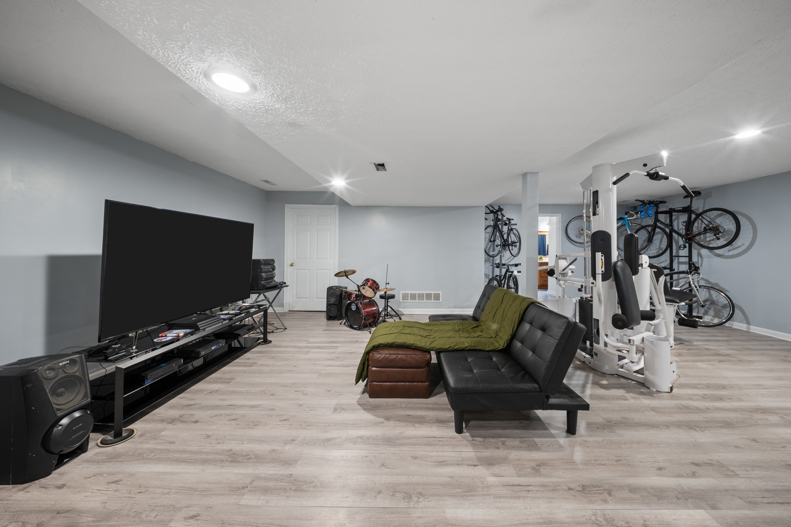 Downstairs, the finished lower level provides 1,138 square feet of extra living space, including a large recreation room, a versatile multi-purpose room currently used as a fourth bedroom, and a full bathroom—perfect for guests or extended family.